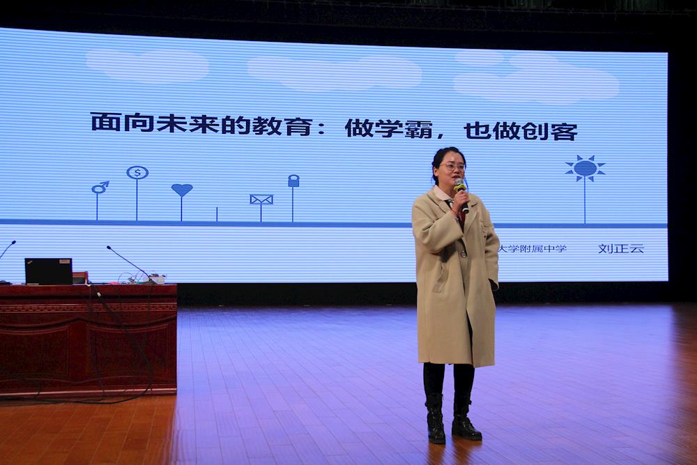 为激发学生科技创新的兴趣,培养学生创新实践的能力,2月26日下午,我校博雅讲坛邀请技术学科刘正云老师,为高一年级全体学生作专题讲座——面向未来的教育:做学霸,也做创客。
