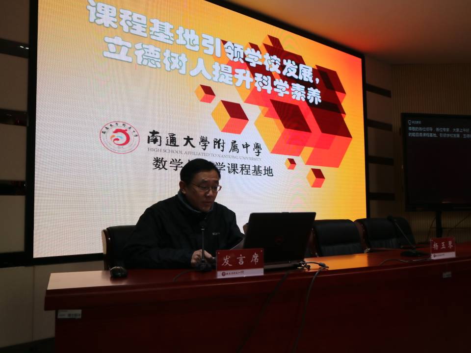 2016 年12月底,在江苏省普通高中课程基地(自然科学类)教学创新实践活动中,我校“数学与科学”课程基地顾峰主任以《课程基地引领学校发展、立德树人提升科学素养》为题进行了主旨性发言。